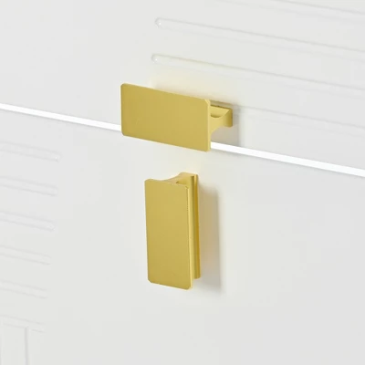 Crafted from durable MDF, this sleek, minimalist shoe cabinet combines functionality and style. The shoe cabinet has two layers of flap drawers and one layer of sliding drawers, making it easier to access items. With gold-tone legs, gold-tone metal handles and a basic striped design, the shoe cabinet will give your storage a new look while also complementing your modern home decor. The anti-tip system that comes with the shoe cabinet increases the safety of your space.