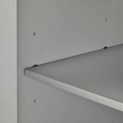 - One adjustable shelf inside each cabinet with a 15lb weight limit per shelf