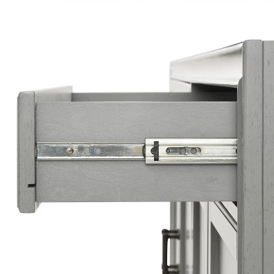 - Each storage cabinet has a full-extension storage drawer on ball-bearing glides with a 15lb weight limit