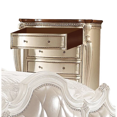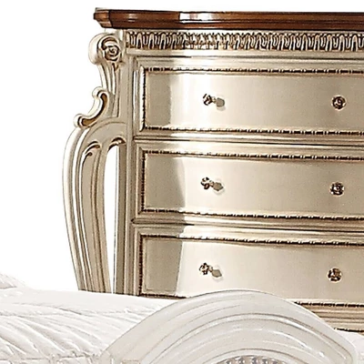 The Picardy Collection 46″ Chest brings the influence of European antiques to life with traditional carvings, detailed looping and a gorgeous antique pearl finish. It includes five drawers, two doors, metal hardware and raised scrolled trim. It is crafted of poplar and aspen wood construction for long lastng. We love that its streamlined design makes this piece blend with decor styles from minimal to contemporary.