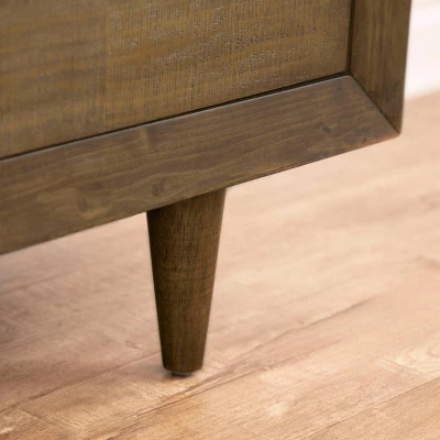 Redesign your dream nesting space with the Aurora Mid-Century five-piece bedroom set by Abbyson. Antique nickel hardware adds a touch of old-world charm to your bedroom while complementing the wood finish. The five-piece set includes the bed frame, two nightstands, one dresser and one mirror. Drawers feature English dovetail joints and metal ball-bearing gliders for smooth openings and closings. The nightstands feature USB port for easy charging and convenience. Meanwhile, the dresser and mirror will make it easier to organize your clothes and help you get ready in the mornings.