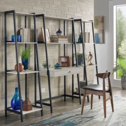 Constructed of solid wood and veneers, Carson Office fits well in any home or executive office. Weathered dove finish accentuates the natural open grain, creating a casual yet elegant look. Three shelves are adjustable and one fixed for all storage needs. Mottled antique finish hardware and four point diamond metal accents enhance the Carson collection.