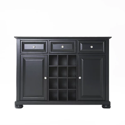 Beautifully crafted, the Alexandria Sideboard with Wine Storage offers long-lasting storage and counter space. The transitional silhouette of the sideboard is elevated by the classic bun feet and decorative raised panels. With three large drawers and two cabinets with adjustable shelves, this sideboard can hide away a multitude of kitchen items. Featured at the center of the sideboard are 12 perfectly sized wine cubbies that can be removed to create open storage with an adjustable shelf. Adaptable and stylish, the Alexandria Sideboard with Wine Storage is a perfect centerpiece for your kitchen. OVERALL PRODUCT DIMENSIONS: 47.75”W X 18”D X 34”H