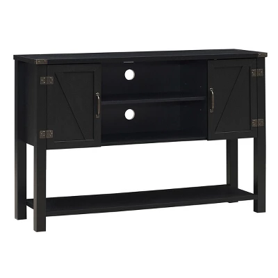 - Modern Elegant Appearance: The concise rectangular console table in classic color designed with clean lines and smooth surface that presenting an elegant feeling. The barn-style side doors decorated with metal hinge and handle will match your other furniture and decorative style of interior space.
