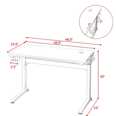 It features large gaming desktop that can withstand 220 lbs of weight, providing ample room for your monitor, PC, laptop, speakers and more.PVC carbon fiber surface is scratch-resistant and easy to clean, reveals excellent performance to allow you to enjoy gaming in enough space. Equipped with a cup holder, a headphone hook and two controller stands, the E-sports table will keep all of your gaming gears organized and be convenient for your daily needs. T-shape frame constructed with steel pipes ensure the stability and durability of the table, accompanying you to enjoy your time in playing games.