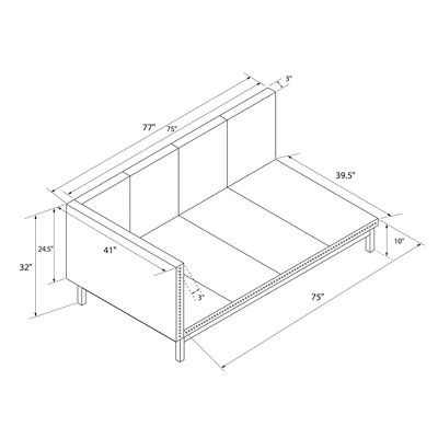 Nothing screams simplicity and chic quite like the Room & Joy Dalila Upholstered Daybed. Inspired by late 18th century classic style, this daybed is designed with nail head trim to bring out its refined profile. With streamlined silhouette and soft linen fabric, this accent piece is ideal for any living room, bedroom or guest room. Its versatility allows you to use it as extra seating or as a bed, as it accommodates one standard twin-size mattress. Founded on a sturdy metal frame, we guarantee optimal stability and durability, up to 400lb. Save the trouble of having to buy a box spring or foundation. The Room & Joy Dalila Upholstered Daybed ships in two boxes and is easy to assemble. Enjoy the freedom of sitting, lounging or sleeping, all from the comfort of your daybed!