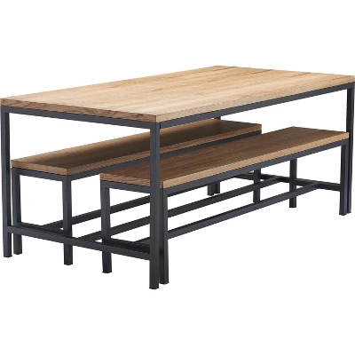 Bring home a dose of welcoming industrial style with this modern dining table from iconic American designer Finch. A generously sized, ash veneer tabletop is made in a light-toned oak finish, and black metal creates a strong, stylish frame and legs. Charming wood grains on the surface add a bit of rustic charm to this dining room furniture. The combination of simple, quality materials creates a stylish spot you’ll love returning to again and again, whether for everyday dinners, holiday feasts, game night or craft projects.