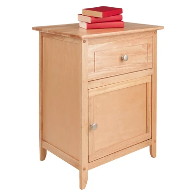 Complement your bedroom furniture with this Natural Eugene Nightstand from Winsome. This sturdy wood nightstand features a single drawer and a spacious lower cabinet. The natural wood finish works well alongside sofas, reading chairs and beds, and easily blends in with many decor styles. The large drawer at the top can be used to stow anything from bedtime essentials to handy knick-knacks, while the lower cabinet doubles as a storage space for books, magazines and other daily utility items. Plus, the elegantly beveled top offers good space to display your favorite collectibles.