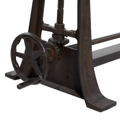 - •Brown wood drafting office desk carries a rectangular top with tilt cranking mechanism on a trestle style base