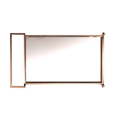Add a touch of glam to your entertaining space with the Aiden Lane Iverson Metal Mirrored Bar Cart. Locking caster wheels take the party from room to room, while spacious mirrored shelves neatly hold bottles, mixers, and glassware. Slide this modern bar cart into your living area to serve up cocktails and appetizers at your next dinner party, or station in your dining room as an elegant dessert buffet. Host the most with this stylish two-tier drink cart.