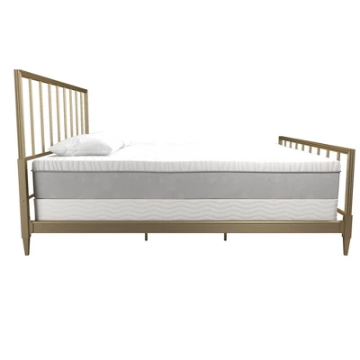 The CosmoLiving by Cosmopolitan Blair Brass Metal Bed is minimalist design in its full glory. Channeling vintage glam vibes, the bed features golden, vertical metal panels with engraved detailing on the headboard and footboard. What’s more, the Blair Brass Metal Bed comes with side rails and additional center legs for full-on stability and comfort all night long. Mattress and mattress foundation are required and sold separately. Item comes with a one-year limited warranty. Ships in one box and assembles easily.