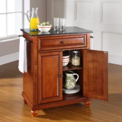 Cambridge Granite Top Portable Kitchen Island/Cart Cherry/Black – Crosley