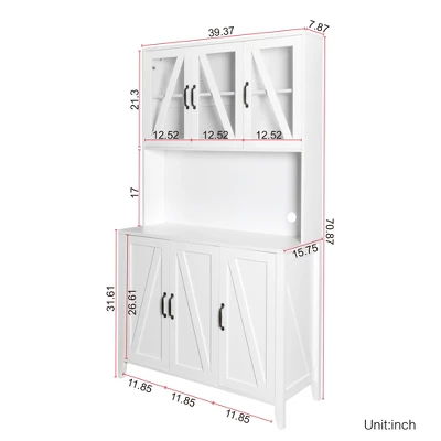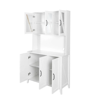 This freestanding storage cabinet has 3 glass doors, 1 open shelf and 3 closed doors for storage. Ample storage space can meet your daily storage needs. This large storage cabinet can be placed in the living room, kitchen, study and other places to play its role. The simple tones match perfectly with various decoration styles.