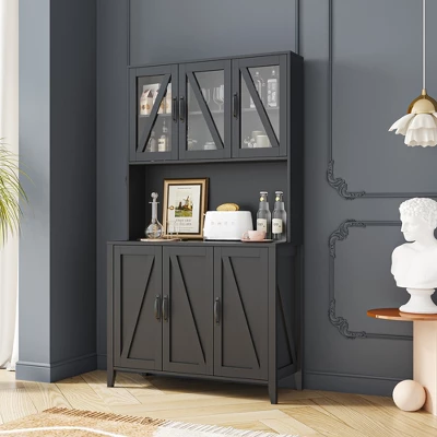 - 【Large Storage Capacity】This wood kitchen storage has 6 hidden compartments, the large middle area is perfect for storing bulky supplies. Ample storage space meets your daily needs.
