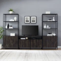 3pc Jacobsen Entertainment Set With Large Etageres Brown Ash – Crosley