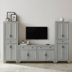 3pc Tara Entertainment Set With Closed Storage Distressed Gray – Crosley