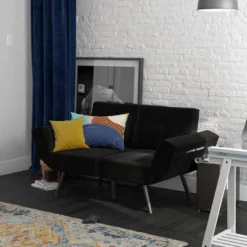 RealRooms Euro Upholstered Tufted Loveseat Futon With Storage Pockets
