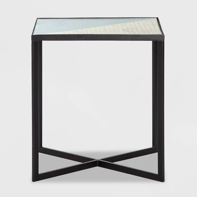 - Black metal base adds an industrial look