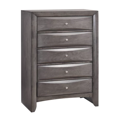 The Picket House Furnishings Madison 5-Drawer Chest is the perfect addition to your bedroom! This vertical chest comes with five, spacious drawers; perfect for neatly storing away all of your belongings. The bottom drawer protects your clothing with the dust proofing layer. Silver finish metal drawer knobs complete the look of the drawer fronts. The transitional, weathered gray wash finish makes it easy to match with any existing décor. Sleek, clean lines make this chest of drawers a staple year after year.