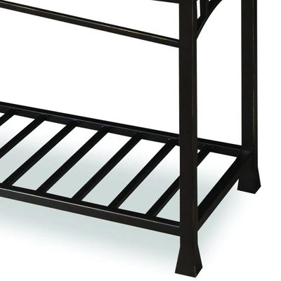 Capture a little of that arts and crafts style with this Homestyles Modern Craftsman Sofa Table. The solid poplar hardwood and veneer frame sits atop a decorative metal foundation for a desirable mixed materials look. The durable construction of both the metal frame and the wood top make this a truly timeless addition to any room your home.