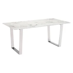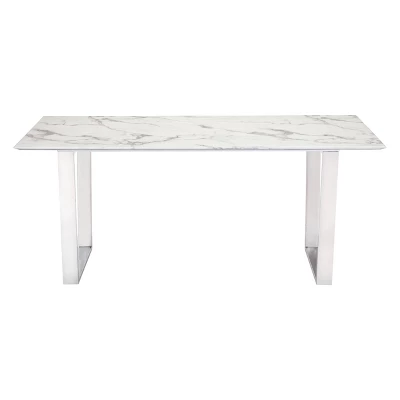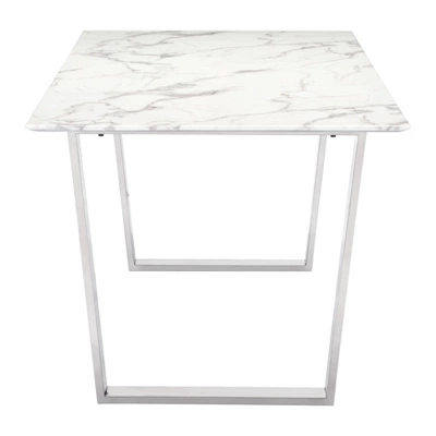 On-trend and decidedly modern, this sophisticated dining table will be on every designers list. Gorgeous from every angle, the rectangular faux marble top seems to float atop its simple brushed silver base. Long and narrow to fit in most spaces, it’s a perfect piece for your dining room or kitchen. Pair with the Atlas console for use as a sideboard or extra serving surface.