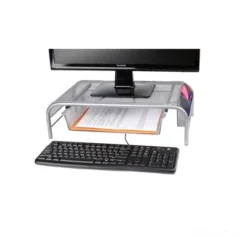Mind Reader 2pk Metal Mesh Monitor Stand And Desk Organizer With Drawer Silver