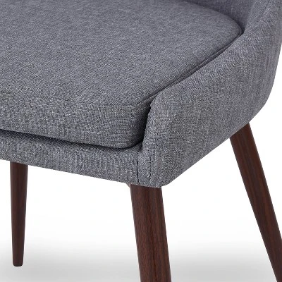 Mid-century minimalist style and modern-day comfort come together in the Ethen Dining Chair in Grey. A stylish contoured shape complements the decor in any dining room, while foam-and-fabric construction makes for a stylish and comfortable evening around the dinner table. Sturdy, wood-look metal legs offer stability and longevity along with a distinct touch of mid-century style.