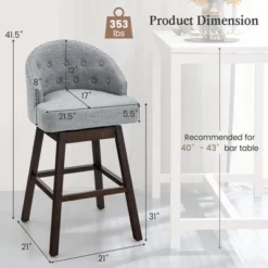 Costway Set Of 4 Swivel Bar Stools Counter Height Upholstered Kitchen Dining Chair Gray/Beige