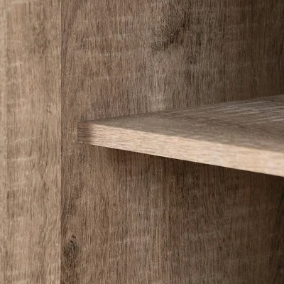 55.5″ Modern 4 Shelf With Metal Bar Room Divider Bookcase Coastal Oak/Black – Saracina Home