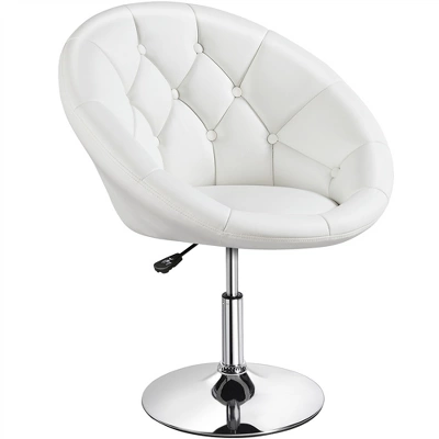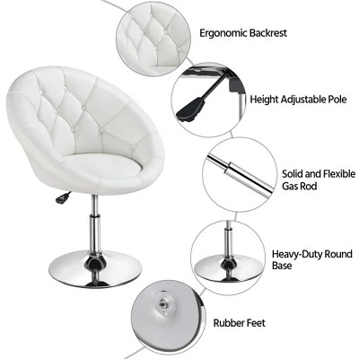 - 360-degree swivel chair: The faux-leather wrapped round seat is founded atop a posh 360-degree swivel pedestal base